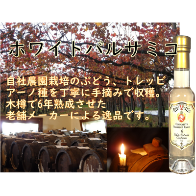 木樽で発酵、熟成を行って作られたホワイトバルサミコです。